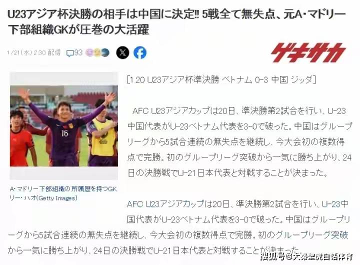 หลังจากชัยชนะ 3-0 ของจีนเหนือเวียดนามในช่วงเช้าตรู่ ซึ่งทำให้ทีมฟุตบอลชายของจีนกลับเข้าสู่รอบชิงชนะเลิศของเอเชียนคัพอีกครั้งหลังจากหายไป 22 ปี การแข่งขันเอเชียนคัพ U23 ได้ถึงจุดสูงสุดที่ไม่เคยมีมาก่อน กลุ่มนักเตะหนุ่มและหัวหน้าโค้ชอันโตนิโอได้กลายเป็นที่รู้จักในชั่วข้ามคืน