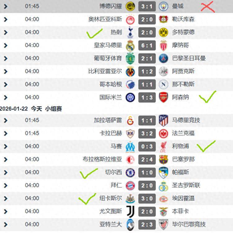 ผลการแข่งขันยูฟ่าแชมเปียนส์ลีก นัดที่ 7 สำหรับสโมสรในพรีเมียร์ลีก: แมนเชสเตอร์ ซิตี้ 1-3 โบโด/กลิมท์ (เยือน), ท็อตแนม ฮ็อตสเปอร์ 2-0 โบรุสเซีย ดอร์ทมุนด์ (เหย้า), อาร์เซนอล 3-1 อินเตอร์ มิลาน (เยือน), ลิเวอร์พูล 3-0 มาร์กเซย (เยือน), เชลซี 1-0 เออีแอล นิโคเซีย (เหย้า), นิวคาสเซิล ยูไนเต็ด 3-0 พีเอสวี ไอนด์โฮเฟน (เหย้า).