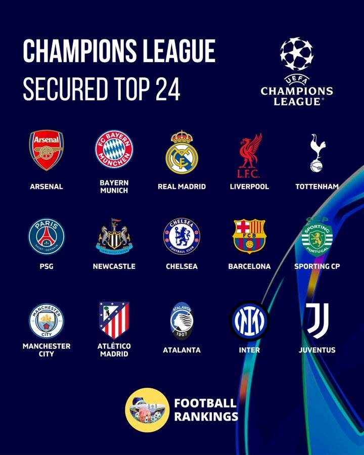 จนถึงปัจจุบัน มีทั้งหมด 15 ทีมที่ผ่านเข้าสู่รอบน็อคเอาท์แล้ว ได้แก่ อาร์เซนอล, บาเยิร์น มิวนิค, เรอัล มาดริด, ลิเวอร์พูล, ท็อตแน่ม ฮ็อตสเปอร์, ปารีส แซงต์-แชร์กแมง, นิวคาสเซิล ยูไนเต็ด, เชลซี, บาร์เซโลนา, สปอร์ติ้ง ซีพี, แมนเชสเตอร์ ซิตี้, แอตเลติโก มาดริด, อาตาลันตา, อินเตอร์ มิลาน, และยูเวนตุส ในจำนวนนี้ อาร์เซนอลและบาเยิร์น มิวนิคได้ผ่านเข้าสู่รอบ 16 ทีมสุดท้ายโดยตรงโดยไม่ต้องเล่นเพลย์ออฟ