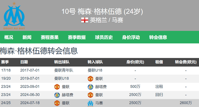 หลังจากคริสเตียโน โรนัลโด ผู้เล่นที่มีทักษะการจบสกอร์ที่เฉียบคมที่สุดที่แมนเชสเตอร์ยูไนเต็ดคือเมสัน กรีนวูด อย่างไรก็ตาม หลังจากมีข้อกล่าวหาเรื่องความรุนแรงในครอบครัวต่อแฟนสาวของเขาในขณะนั้น (ปัจจุบันเป็นภรรยาของเขา) เขาถูกแมนเชสเตอร์ยูไนเต็ดปลดออกจากทีมและขายออกไป ปัจจุบัน กรีนวูดกลายเป็นหัวหอกในการโจมตีของมาร์กเซยในลีกเอิง ผลงานอันโดดเด่นของกองหน้าชาวอังกฤษรายนี้ได้ดึงดูดความสนใจจากสโมสรชั้นนำหลายแห่งในลีกชั้นนำทั้งห้าของยุโรป
