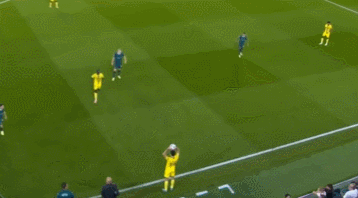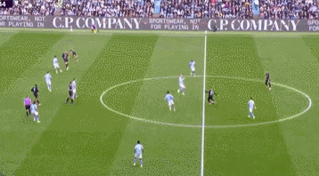 ดังที่แสดงในภาพเคลื่อนไหวด้านล่าง ฮาแลนด์เร่งความเร็วไปข้างหน้าอย่างรวดเร็วหลังจากแย่งบอลได้ แม้ว่าเพื่อนร่วมทีมจะส่งบอลพลาด แต่ฮาแลนด์ก็ยังสามารถครองบอลไว้ได้