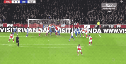 ในนาทีที่ 10 กลยุทธ์การเตะมุมของอาร์เซนอลไม่เป็นผล และไบรท์ตันก็โต้กลับอย่างรวดเร็วทันที ความพยายามในการยิงเดี่ยวของซิมาสก็ถูกกีดขวางโดยเกป้าเช่นกัน