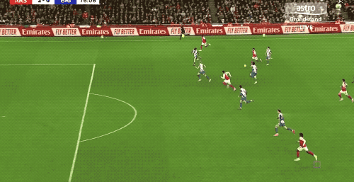 ในนาทีที่ 59 สเกลลี่ช่วยเอนวานิเอเรทำประตู ในนาทีที่ 76 ซาคาตัวสำรองยิงประตูชัยด้วยการซ้ำบอลเข้าประตู อาร์เซนอลเอาชนะไบรท์ตัน 2-0 ผ่านเข้ารอบก่อนรองชนะเลิศของศึกอีเอฟแอลคัพ ใน 8 นัดหลังสุดในทุกรายการ ปืนใหญ่ไม่เพียงแต่คว้าชัยชนะในทุกนัดเท่านั้น แต่ยังเสียประตูเพียง 1 ประตูเท่านั้น