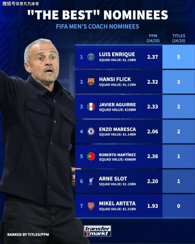 ฟีฟ่าได้ประกาศรายชื่อผู้ได้รับการเสนอชื่อเข้าชิงรางวัลโค้ชฟุตบอลชายยอดเยี่ยมประจำปี โดยมี Transfermarkt แสดงผลงานของผู้เข้ารอบสุดท้ายจากฤดูกาลที่ผ่านมา