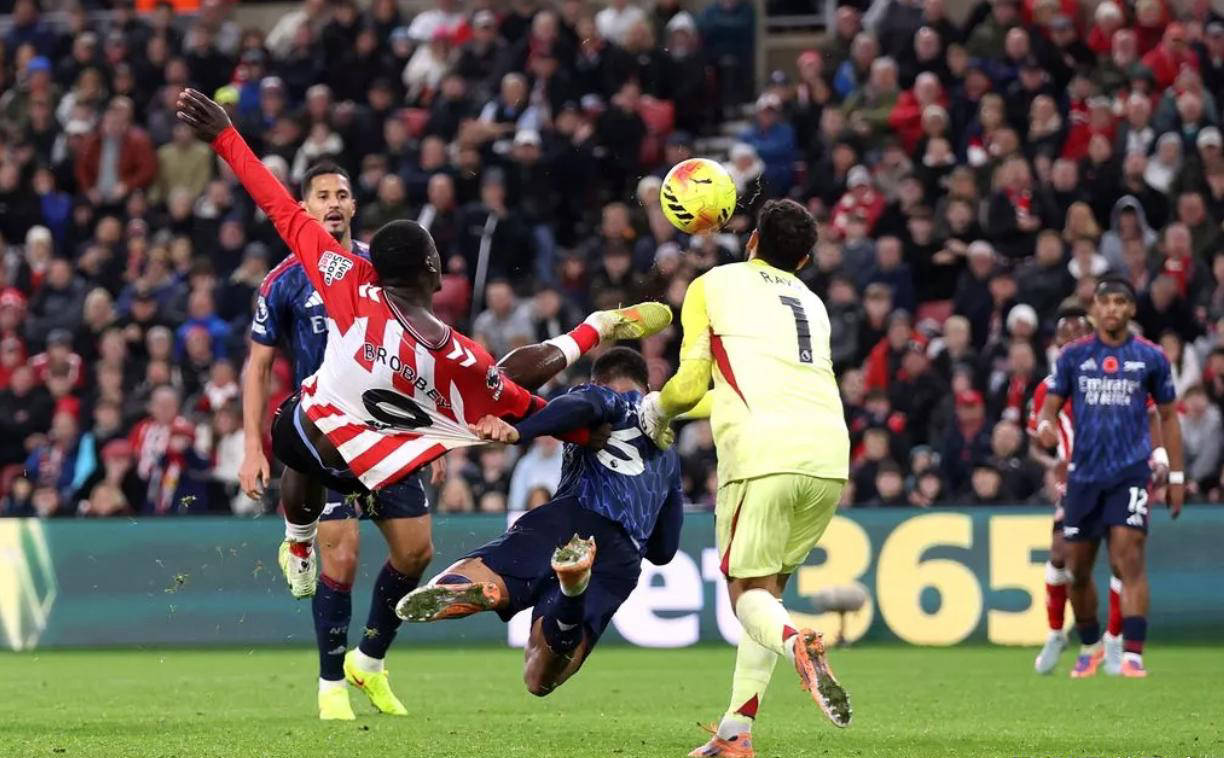 ในครึ่งแรก แดน บอลลาร์ด กองหลังของซันเดอร์แลนด์ทำประตูด้วยลูกวอลเลย์ที่ยอดเยี่ยมหลังจากสัมผัสบอลครั้งแรกอย่างสวยงาม สร้างความกดดันให้กับอาร์เซนอลที่นำเป็นจ่าฝูงของตารางพรีเมียร์ลีก