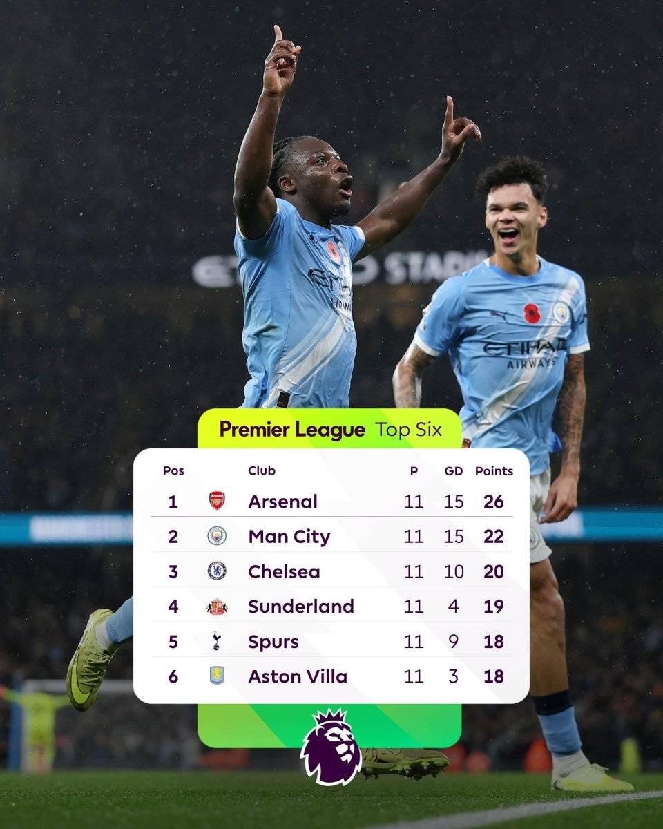 อันดับในพรีเมียร์ลีกมีการเปลี่ยนแปลงอย่างมาก ส่งผลให้เกิดสิ่งที่เรียกว่า "การต่อสู้อย่างดุเดือดเพื่อแย่งชิงตำแหน่ง" อาร์เซนอลยังคงรักษาตำแหน่งผู้นำด้วย 26 คะแนน แมนเชสเตอร์ ซิตี้ อยู่อันดับสองด้วย 22 คะแนน เชลซี อยู่ในอันดับสามด้วย 20 คะแนน ขณะที่ ซันเดอร์แลนด์ ตามมาเป็นอันดับสี่ด้วย 19 คะแนน