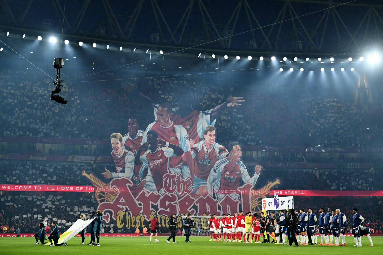 ภาพทิโฟขนาดใหญ่ที่คลี่ออกที่สนามเอมิเรตส์ สเตเดียมก่อนเริ่มการแข่งขันนั้นน่าประทับใจอย่างยิ่ง เมื่อเสียงนกหวีดดังขึ้นเพื่อเริ่มเกม นักเตะจากทั้งสองฝ่ายต่างปะทะกันอย่างดุเดือด พร้อมกับการฟาวล์ที่หลีกเลี่ยงไม่ได้ซึ่งเติมเต็มบรรยากาศอันร้อนแรงของศึกดาร์บี้แมตช์