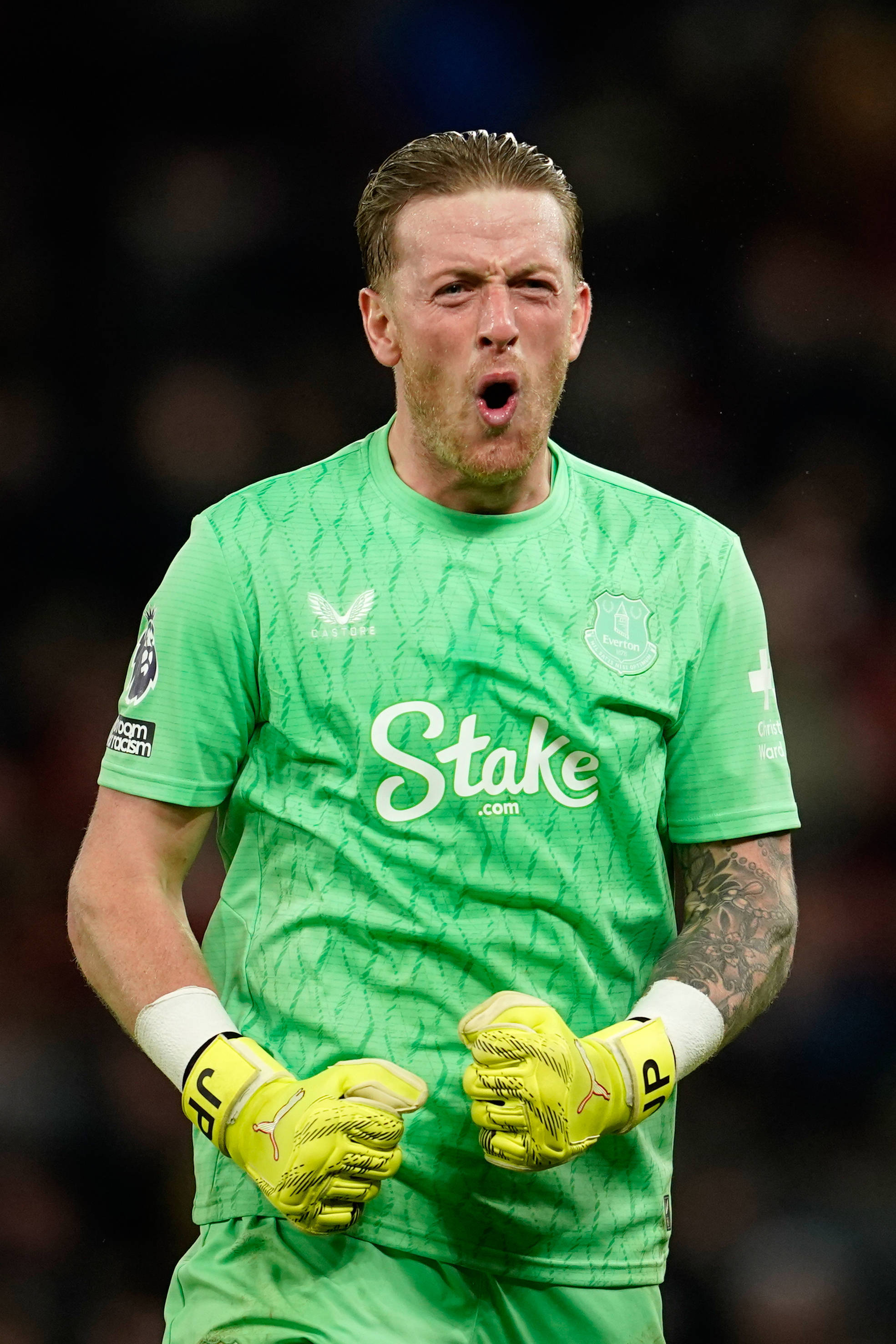 เมื่อวันที่ 24 พฤศจิกายน จอร์แดน พิคฟอร์ด ผู้รักษาประตูของเอฟเวอร์ตัน ฉลองชัยชนะ ซินหัว/เอพี