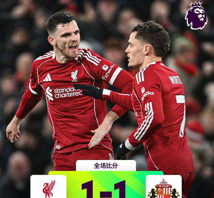 ในขณะเดียวกัน ลิเวอร์พูลเปิดบ้านต้อนรับซันเดอร์แลนด์ที่กำลังฟอร์มดีที่แอนฟิลด์ ทีมที่เพิ่งเลื่อนชั้นเก็บได้ 22 คะแนนจาก 13 นัดในลีกฤดูกาลนี้ ถือเป็นการเริ่มต้นที่น่าประทับใจ ครึ่งแรกจบลงโดยไม่มีประตูในนาทีที่ 67 ของครึ่งหลัง ซันเดอร์แลนด์ขึ้นนำจากการยิงไกลที่ไม่คาดคิดซึ่งเปลี่ยนทิศทางหลังจากโดนเวอร์จิล ฟาน ไดจ์ก ทำให้บอลเปลี่ยนทิศทางเข้าประตูไป อย่างไรก็ตาม ลิเวอร์พูลไม่ยอมแพ้ โดยวิร์ตซ์ทำประตูตีเสมอในนาทีที่ 81 จบเกมด้วยผลเสมอ 1-1