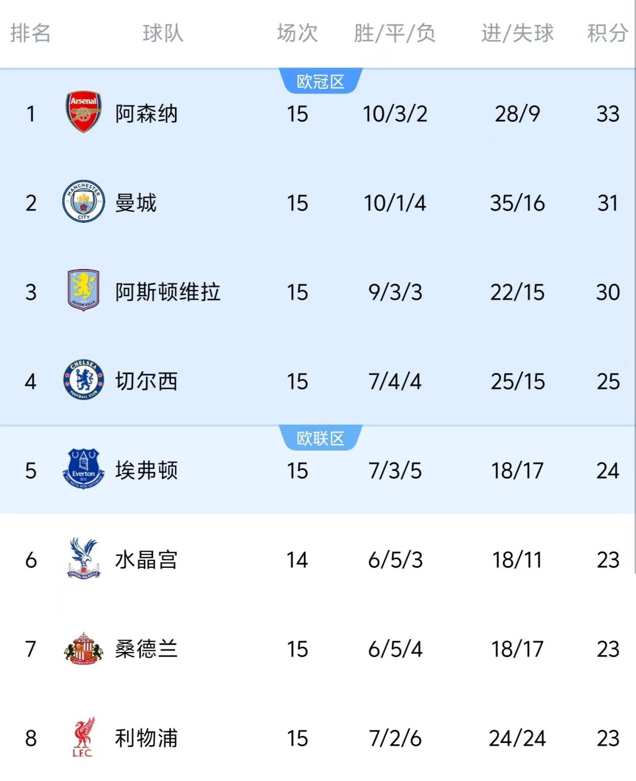 ข้อเท็จจริงที่น่าตำหนิคือ แมนเชสเตอร์ ซิตี้ เอาชนะ ซันเดอร์แลนด์ ได้อย่างสบาย ๆ 3-0 ในบ้าน ตารางลีกล่าสุดแสดงให้เห็นว่า อาร์เซนอล นำเป็นจ่าฝูงด้วย 33 คะแนน แมนเชสเตอร์ ซิตี้ ตามมาเป็นอันดับสองด้วย 31 คะแนน แอสตัน วิลล่า อยู่อันดับสามด้วย 30 คะแนน และเชลซี อยู่อันดับสี่ด้วย 25 คะแนน – ช่องว่างกับสามอันดับแรกกำลังกว้างขึ้น ลิเวอร์พูล อยู่อันดับแปดด้วย 23 คะแนน