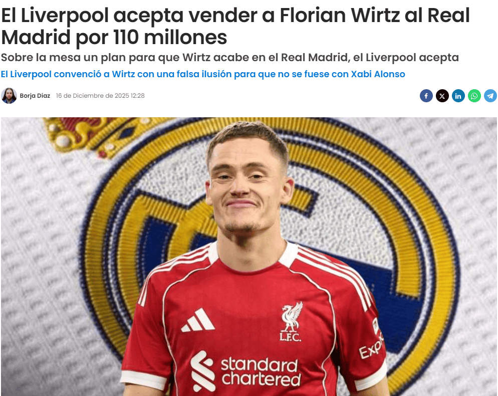 เมื่อวันที่ 17 ธันวาคม ตามเวลาปักกิ่ง สื่อสเปน Defensa Central รายงานว่า ลิเวอร์พูลพร้อมที่จะขาย วิร์ตซ์ ในช่วงสิ้นสุดฤดูกาลนี้ ด้วยค่าตัวรวมประมาณ 110 ล้านยูโร โดย เรอัล มาดริด กำลังเตรียมยื่นข้อเสนอในช่วงฤดูร้อนนี้ กลุ่ม Fenway Sports Group ได้ลงทุนมากกว่า 400 ล้านปอนด์ โดยหวังว่าจะใช้ประโยชน์จากแรงผลักดันของ Slott ในการคว้าแชมป์พรีเมียร์ลีกกลับมาเพื่อเสริมความแข็งแกร่งให้กับทีม อย่างไรก็ตาม การเซ็นสัญญาใหม่หลายรายไม่สามารถสร้างผลงานได้ทันที โดยผลงานของทีมหงส์แดงลดลงอย่างเห็นได้ชัดเมื่อเทียบกับฤดูกาลที่แล้ว พวกเขาชนะเพียง 6 นัดจาก 17 นัดหลังสุดในทุกรายการ และปัจจุบันรั้งอันดับ 7 ในพรีเมียร์ลีก