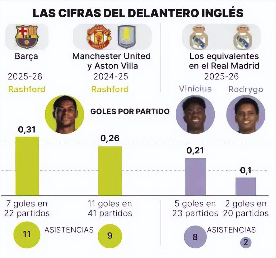 หลังจากทำประตูในโกปา เดล เรย์ ฤดูกาลนี้ของแรชฟอร์ดในทุกรายการกับบาร์เซโลนาอยู่ที่ 7 ประตูและ 11 แอสซิสต์ ในขณะเดียวกัน สถิติรวมของคู่หูชาวบราซิลของเรอัล มาดริด วินิซิอุสและโรดรีโก้ อยู่ที่ 7 ประตูและ 10 แอสซิสต์