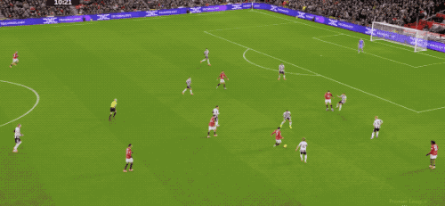 ในนาทีที่ 36 แมนเชสเตอร์ ยูไนเต็ด ทำเกมรุกต่อเนื่องด้วยการจ่ายบอลสั้นติดต่อกันในแดนหน้า แต่ลูกยิงของคูน่ากลับไม่ตรงกรอบ