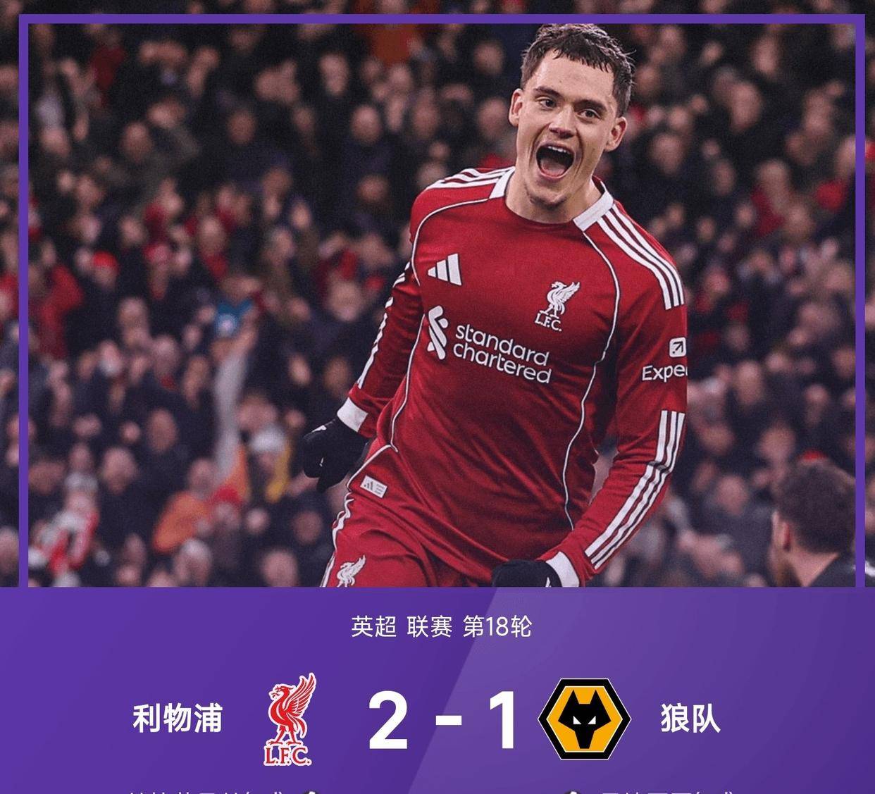ลิเวอร์พูลยังคว้าชัยชนะอย่างหวุดหวิด 2-1 แม้ว่าคู่แข่งจะเป็นทีมวูล์ฟส์ที่อยู่อันดับสุดท้ายของตารางก็ตาม ฤดูกาลของวูล์ฟส์นั้นเลวร้ายอย่างไม่น่าเชื่อ โดยเก็บได้เพียง 2 คะแนนจาก 18 นัด ซึ่งเป็นสถิติที่แย่ที่สุดในพรีเมียร์ลีกนับตั้งแต่มีการแข่งขันมาจนถึงครึ่งฤดูกาล การเซ็นสัญญา 110 ล้านยูโรของลิเวอร์พูลอย่างวิร์ตซ์ได้ยุติการขาดประตูของเขาในที่สุด โดยยิงประตูในจังหวะตัวต่อตัวในนาทีที่ 42 ซึ่งสร้างความโล่งใจให้กับแฟนบอลเจ้าบ้าน อย่างไรก็ตาม ชัยชนะของหงส์แดงยังห่างไกลจากความแน่นอน พวกเขาถูกกดดันจากวูล์ฟส์ในครึ่งหลังและรอดพ้นจากความพ่ายแพ้ที่น่าตกใจได้เพียงเพราะเสาประตู