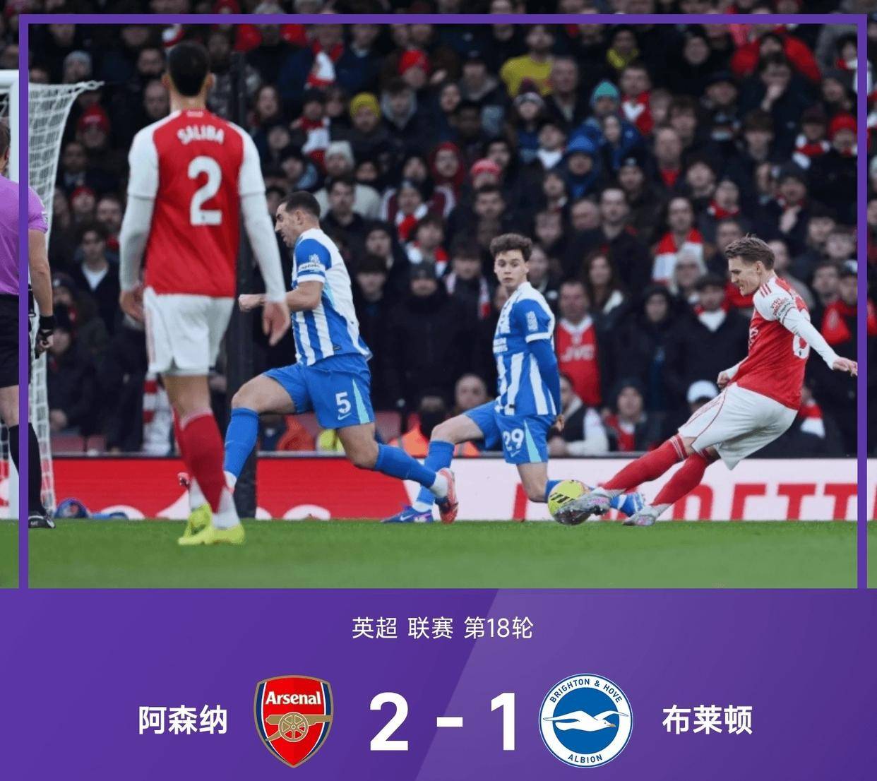 การแข่งขันของอาร์เซนอลนั้นเต็มไปด้วยความตึงเครียดอย่างแท้จริง มาร์ติน โอเดการ์ด ทำลายสถิติการทำประตูที่แห้งแล้งของเขาในฤดูกาลนี้ด้วยการยิงไกลในนาทีที่ 14 อย่างไรก็ตาม ไบรท์ตันได้เปิดฉากการกลับมาอย่างบ้าคลั่งหลังจากพักครึ่ง โดยไบรอัน โกเมส ยิงประตูตีตื้นจากระยะใกล้ในนาทีที่ 64 ทำให้แนวรับของปืนใหญ่ตกอยู่ในสถานการณ์ที่ลำบาก หากไม่ใช่เพราะการเซฟอย่างปาฏิหาริย์ของผู้รักษาประตู เดวิด รายา ในนาทีที่ 80 ตำแหน่งจ่าฝูงของอาร์เซนอลอาจตกอยู่ในอันตรายสถิติหลังการแข่งขันเปิดเผยว่า อาร์เซนอลยิงทั้งหมด 24 ครั้งตลอดทั้งเกม – มากกว่าไบรท์ตันถึงสามเท่า – แต่ชัยชนะของพวกเขากลับรู้สึกเหมือนเดินบนเชือกเส้นเดียว