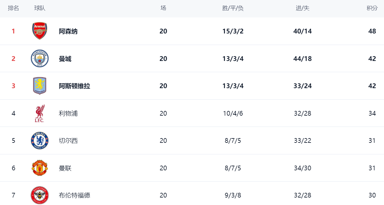 ในตารางลีก อาร์เซนอลครองตำแหน่งจ่าฝูงด้วย 48 คะแนน ความได้เปรียบของพวกเขาเพิ่มขึ้นอย่างมาก ขณะนี้นำหน้าแมนเชสเตอร์ ซิตี้อยู่ถึง 6 คะแนน ทำให้โอกาสคว้าแชมป์ของพวกเขาดูสดใสมาก แอสตัน วิลล่ามีคะแนนเท่ากับแมนเชสเตอร์ ซิตี้ที่ 42 คะแนน อยู่ในอันดับที่สาม ลิเวอร์พูลอยู่ในอันดับที่สี่ด้วย 34 คะแนนมันจะยากมากสำหรับลิเวอร์พูลที่จะไต่อันดับขึ้นไปในตารางคะแนน; การรักษาอันดับที่สี่อาจเป็นเป้าหมายที่สมจริงที่สุด เชลซีและแมนเชสเตอร์ ยูไนเต็ดต่างมี 31 คะแนน อยู่ในอันดับที่ห้าและหกตามลำดับ ท็อตแน่ม ฮ็อตสเปอร์ทำได้เพียง 27 คะแนน อยู่ในอันดับที่สิบสาม