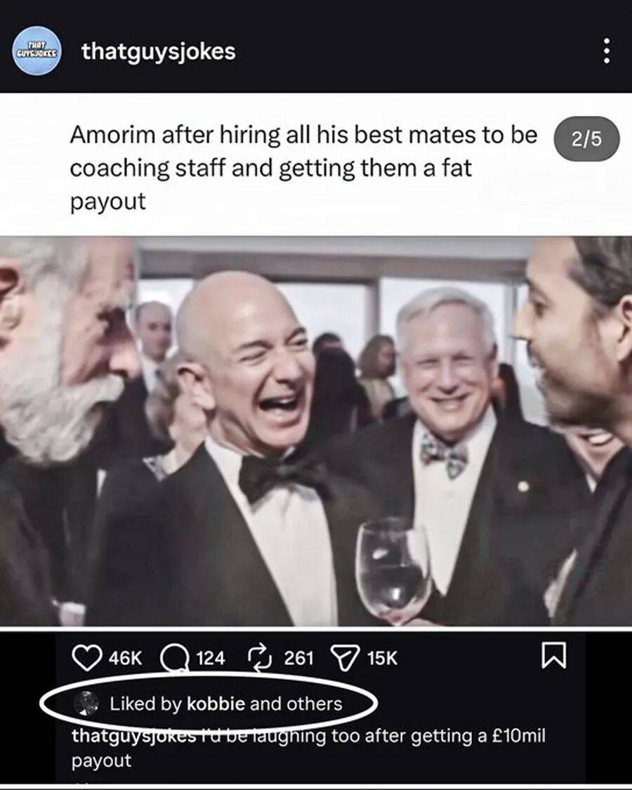 หลังจากที่แมนเชสเตอร์ ยูไนเต็ดได้ปลดอดีตผู้จัดการทีม รูเบน อาโมริม ออกจากตำแหน่ง กองกลางทีมชาติอังกฤษวัย 20 ปี โคบบี้ ไมนู ได้กดไลค์โพสต์บนโซเชียลมีเดียที่ล้อเลียนความโลภของอาโมริม บทความออนไลน์ดังกล่าวได้วิจารณ์อาโมริมที่พาทีมโค้ชของเขามาร่วมงานกับยูไนเต็ด และจงใจยั่วยุให้เกิดการปลดตัวเองออกจากตำแหน่งเพื่อหวังได้รับเงินชดเชยก้อนโต
