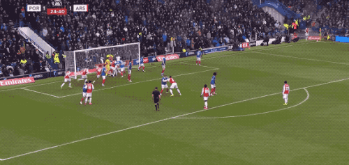 ในนาทีที่แปด อาร์เซนอลได้ลูกเตะมุม ความวุ่นวายเกิดขึ้นในเขตโทษของพอร์ทสมัธ และกองหลังโดเซลเผลอเปลี่ยนทิศทางบอลเข้าประตูตัวเอง