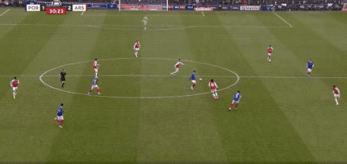 ในนาทีที่ 25 มาร์ตินเนลลี่ทำประตูจากลูกเตะมุม นับเป็นการยิงเข้ากรอบครั้งแรกของอาร์เซนอลในเกมนี้ สี่สิบนาทีต่อมา อาร์เซนอลสร้างโอกาสต่อเนื่อง: มาร์ตินเนลลี่ยิงระยะเผาขนไปชนเสา ขณะที่มาดูเอเก้พลาดจุดโทษที่เขาได้มาเอง