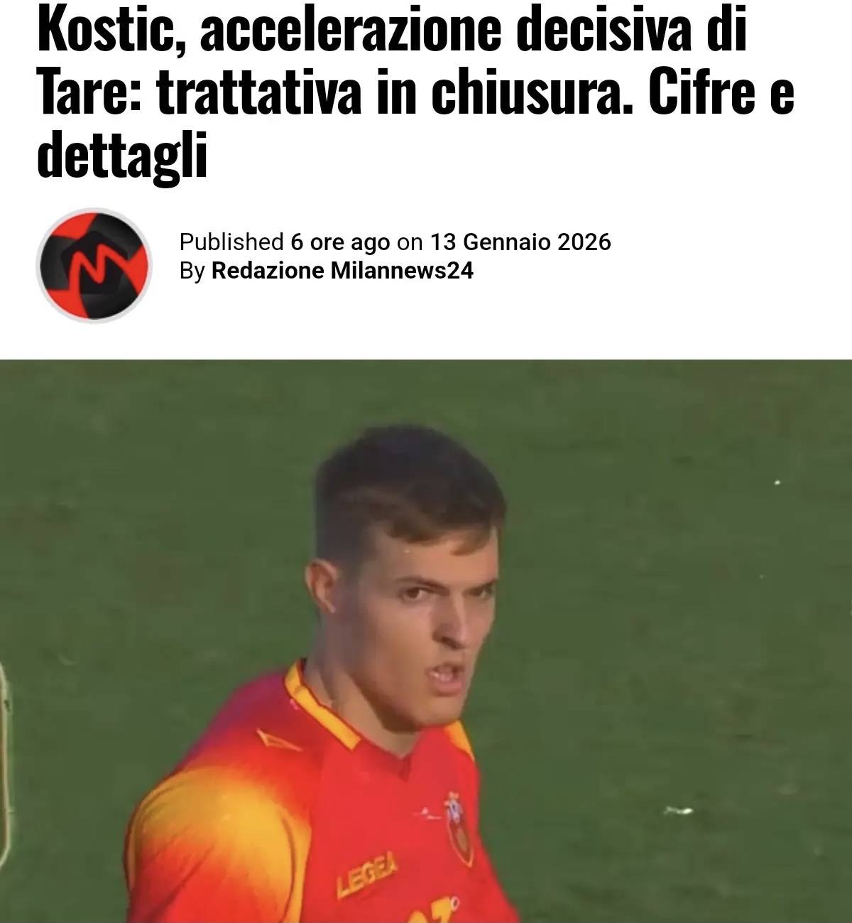 การไล่ล่าของมิลานเพื่อคว้าตัวคอสติชเข้าสู่ขั้นตอนสุดท้ายแล้ว โดยตาเร่ได้ทำลายทางตันเพื่อผลักดันการเจรจาให้ก้าวหน้า การเจรจากับเรดสตาร์เบลเกรดได้เข้าสู่ขั้นตอนรายละเอียดแล้ว โดยค่าตัวที่ยอมรับได้ถูกเปิดเผยออกมาแล้ว
