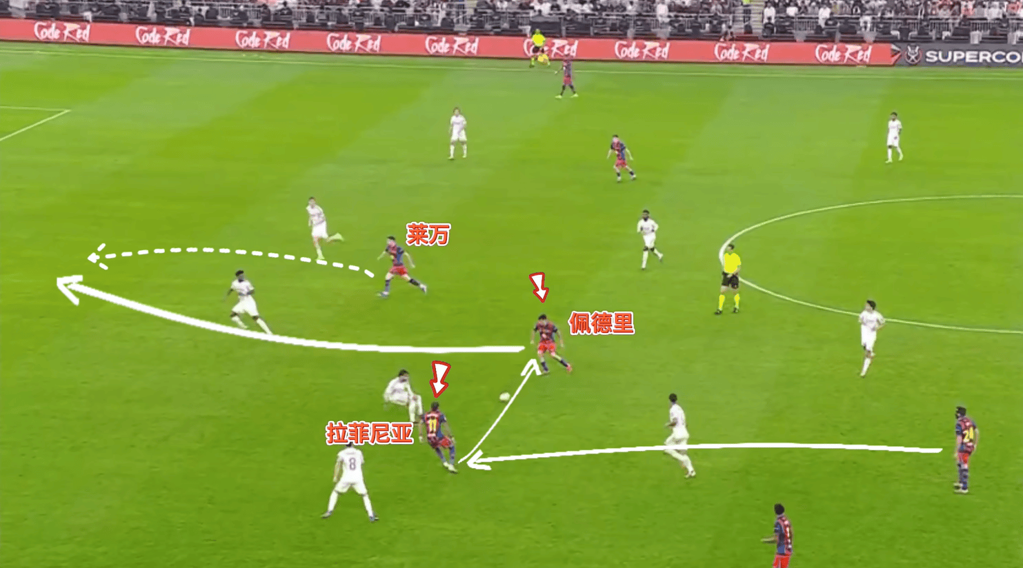 นอกจากนี้ ความสามารถของเลวานดอฟสกี้ในการวิ่งทำทางยังบังคับให้คู่แข่งต้องคอยติดตามเขา ขณะที่ศักยภาพของราฟินญ่าในการวิ่งทำทางในจังหวะที่สองช่วยให้บาร์เซโลนาครองความได้เปรียบด้านจำนวนผู้เล่นในกรอบเขตโทษ และรับประกันประสิทธิภาพในการโจมตีประตู นี่คือสิ่งที่เฟร์รานไม่สามารถทำซ้ำได้ ซึ่งเป็นเหตุผลที่เฟร์รานต้องพึ่งพาการสร้างสรรค์เกมเจาะแนวรับของราฟินญ่ามากกว่าเลวานดอฟสกี้