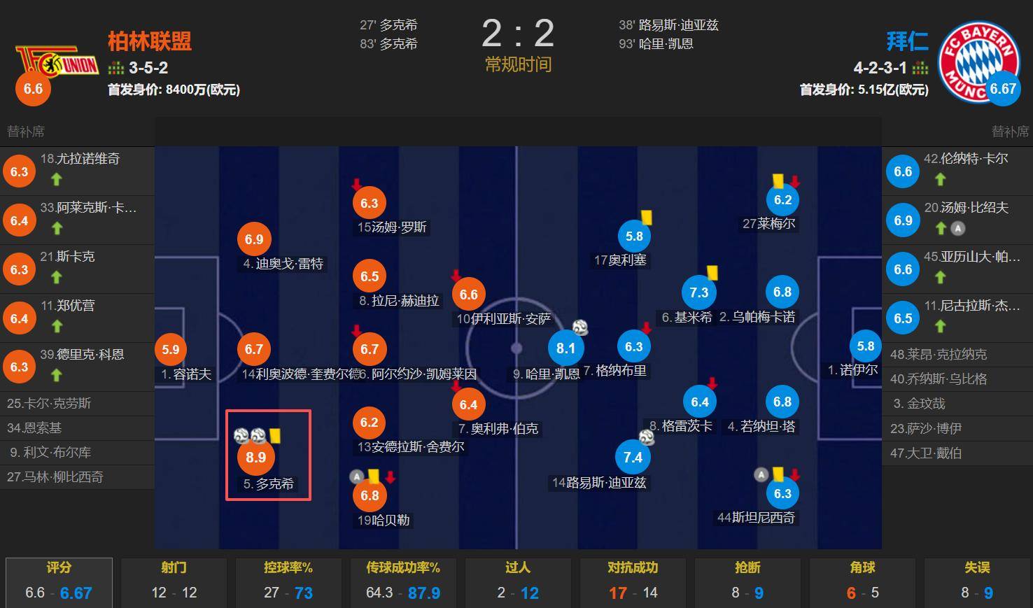ในรอบที่สิบของบุนเดสลีกา ยูเนียน เบอร์ลิน เสมอกับ บาเยิร์น มิวนิค 2-2 ทำให้บาเยิร์น มิวนิค ไม่สามารถชนะติดต่อกัน 16 นัดในฤดูกาลนี้ได้ ทั้งสองประตูในนัดนี้ถูกทำโดยโดดี ซึ่งกลายเป็นผู้เล่นคนสำคัญที่ทำให้บาเยิร์น มิวนิค ไม่สามารถชนะติดต่อกันได้