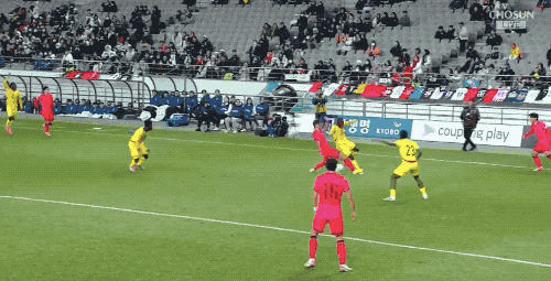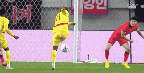 ในนาทีที่ 43 การทุ่มจากแดนหลังของเกาหลีใต้ถูกสกัดกั้นไว้ได้ การยิงอย่างรุนแรงของ Souleymane ถูกบล็อกบางส่วนโดยกองหลังและกระทบตาข่ายด้านข้าง