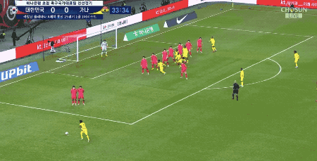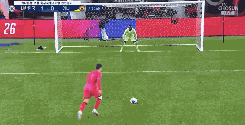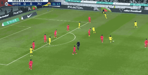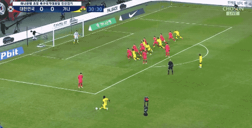 ในนาทีที่ 60, ลูกโหม่งของคิม จิก-กยู ได้ทำเส้นทางโค้งสูง ทำให้ผู้รักษาประตูชาวกานาต้องถอยหลังอย่างรวดเร็วและชกบอลข้ามคานออกไป