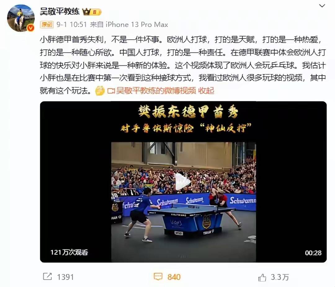 当一些人因为樊振东的表现而议论纷纷时,吴敬平主动站出来为他辩护。通过阅读吴敬平的话,我们才开始真正理解樊振东的实力,也让人感叹他对人有着独到的见解。
