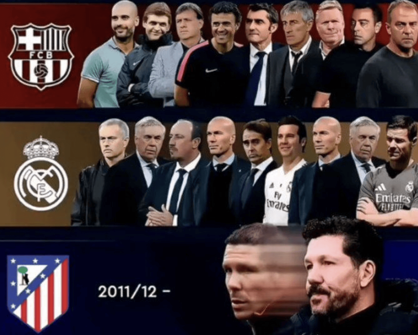 ตั้งแต่ปี 2011 ถึง 2025 ตลอดระยะเวลา 14 ปี ลาลีกาได้ผ่านการเปลี่ยนแปลงมากมายนับไม่ถ้วน ในช่วงเวลานี้ ที่นั่งผู้จัดการทีมของเรอัล มาดริด และบาร์เซโลนา ได้เห็นการสืบทอดตำแหน่งของโค้ชชื่อดังมากมายที่เข้ามาและออกไป แต่บุคคลที่นั่งอยู่ในม้านั่งของแอตเลติโก มาดริด ยังคงไม่เปลี่ยนแปลง