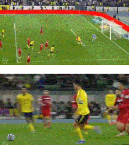 ในนาทีที่ 10 ของครึ่งแรก เฟลิกซ์ส่งบอลข้ามอย่างแม่นยำจากฝั่งซ้าย คริสเตียโน่ โรนัลโด้พุ่งเข้าหาบอลและโหม่งจากจุดโทษ แต่ผู้รักษาประตูฝ่ายตรงข้ามก็เซฟได้อย่างน่าอัศจรรย์เพื่อปฏิเสธเขา หากไม่มีการเซฟนั้น มันคงเป็นอีกหนึ่งประตูที่น่าทึ่ง นี่ถือเป็นประตูที่ 16 ของโรนัลโด้ในฤดูกาลนี้ในซาอุดิโปรลีก ซึ่งทำให้เขายังคงรักษาตำแหน่งจ่าฝูงของตารางคะแนนสูงสุดของลีกไว้ได้