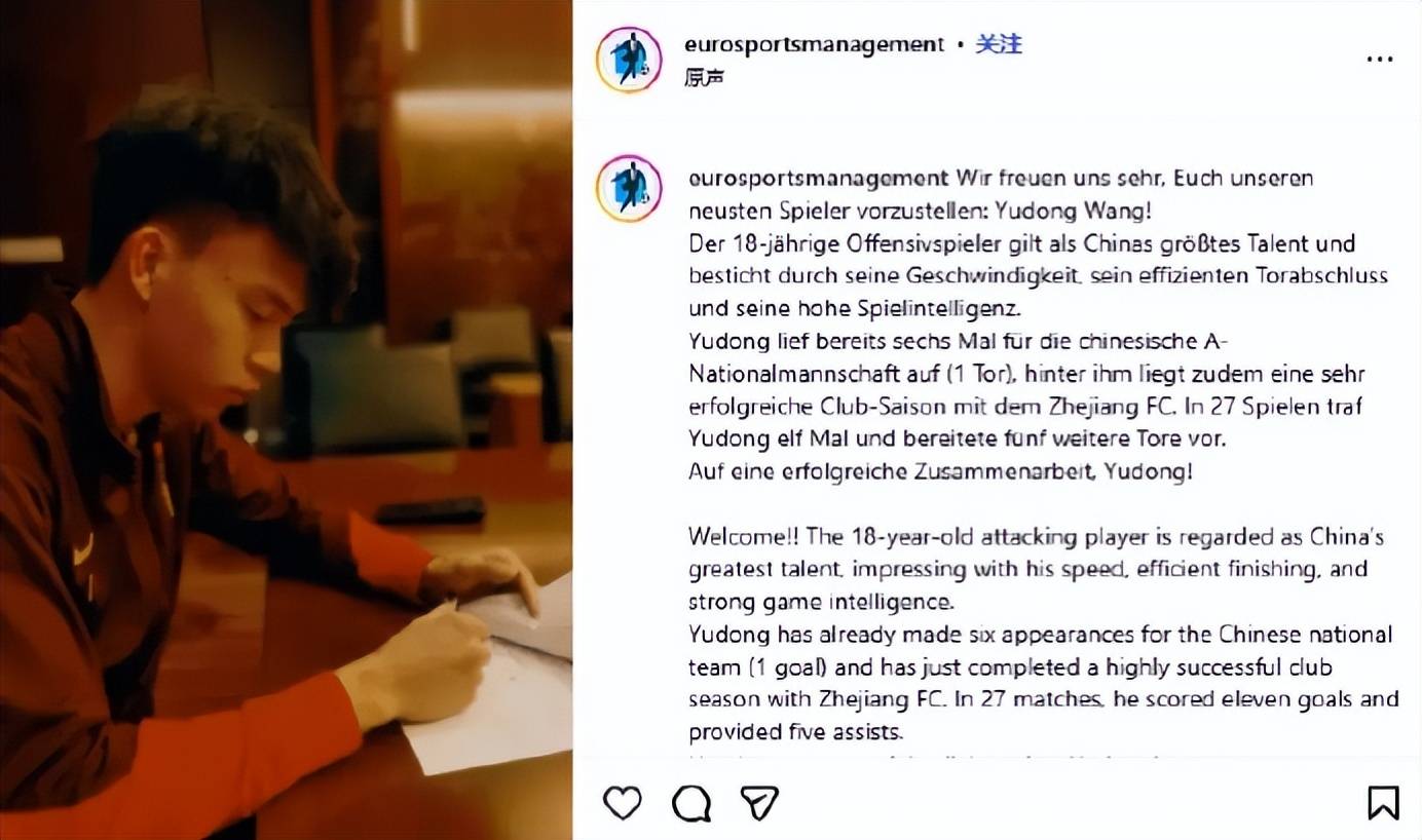 ไม่นานมานี้ EuroSportsManagement ซึ่งเป็นเอเจนซี่จากยุโรปที่ใช้ภาษาเยอรมัน ได้ประกาศอย่างเป็นทางการว่า นักฟุตบอลชาวจีน หวัง ยู่ตง ได้เซ็นสัญญากับบริษัทอย่างเป็นทางการแล้ว ผ่านวิดีโอสั้น ๆ EuroSportsManagement ได้เปิดเผยว่า หวัง ยู่ตง กองหน้าทีมชาติและนักเตะของทีมเจ้อเจียง เอฟซี ได้เข้าร่วมทีมอย่างเป็นทางการแล้ว เอเจนซี่ยังได้ยกย่อง หวัง ยู่ตง อย่างสูง โดยยกย่องเขาว่าเป็น "หนึ่งในนักเตะที่มีพรสวรรค์ที่สุดของจีน"รายงานต่อมาได้ระบุว่า หน่วยงานนี้มีสำนักงานใหญ่ตั้งอยู่ที่ลิกเตนสไตน์ โดยดำเนินการหลักภายในลีกของประเทศที่ใช้ภาษาเยอรมัน ขอบเขตการดำเนินงานครอบคลุมประเทศเยอรมนี ออสเตรีย สวิตเซอร์แลนด์ ลักเซมเบิร์ก ลิกเตนสไตน์ และเบลเยียม