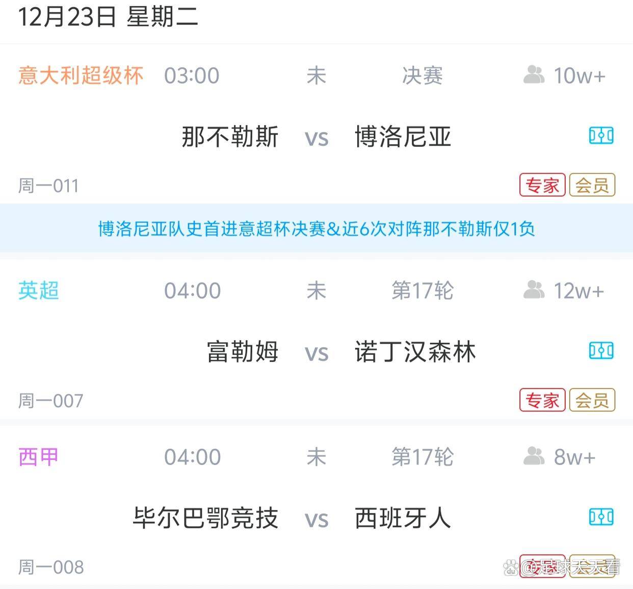 แม้ว่าตารางการแข่งขันฟุตบอลคืนนี้จะเต็มไปด้วยแมตช์มากมาย รวมถึงรอบแบ่งกลุ่มของแอฟริกา คัพ ออฟ เนชันส์ และรอบที่หกของเอเอฟซี แชมเปียนส์ลีก โซนเอเชียตะวันตก แต่การแข่งขันที่น่าจะดึงดูดความสนใจของแฟนบอลมากที่สุดคือศึกใหญ่ที่กำลังจะมาถึง ได้แก่ นัดชิงชนะเลิศซูเปอร์คัพอิตาลีระหว่างนาโปลีกับโบโลญญา ในพรีเมียร์ลีก ฟูแล่มเปิดบ้านรับการมาเยือนของน็อตติงแฮม ฟอเรสต์ และในลาลีกา แอธเลติก บิลเบา จะเผชิญหน้ากับเอสปันญอลอย่างดุเดือด