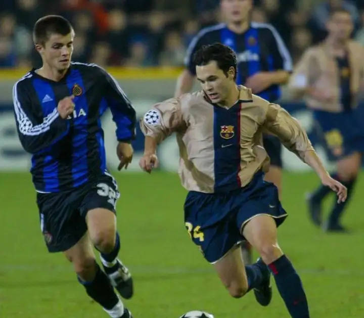 เป็นเพราะพรสวรรค์อันโดดเด่นของเขาเองที่ทำให้อิเนียสต้าได้ประเดิมสนามให้กับบาร์เซโลนาตั้งแต่อายุ 18 ปี ในปี 2002 เขาได้ลงสนามพบกับคลับบรูจจ์ เป็นครั้งแรกที่แฟนบอลได้เห็นทักษะของเขาในการแข่งขันจริง