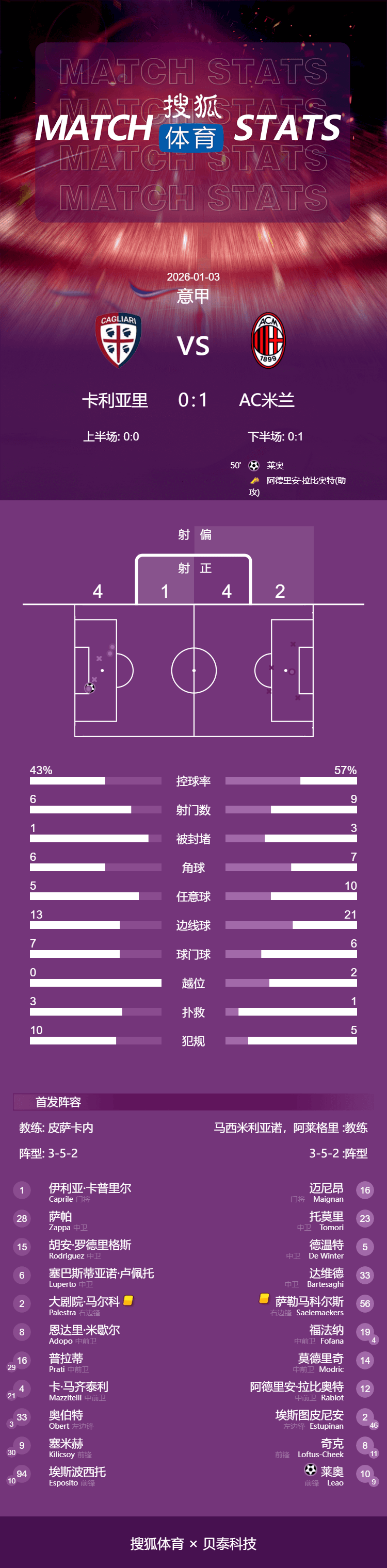 เวลา 03:45 น. ตามเวลาปักกิ่ง วันที่ 3 มกราคม 2026 กาญารี่เป็นเจ้าบ้านต้อนรับเอซี มิลาน ในรอบที่ 18 ของเซเรีย อาครึ่งแรกทั้งสองทีมผลัดกันโจมตีแต่ยังไม่สามารถทำประตูได้ ในครึ่งหลัง เลเอาทำประตูเดียวของเกมจากการช่วยของราบิโอต์ ในที่สุด เอซี มิลาน ชนะแบบเฉียดฉิว 1-0 จากเกมเยือนกับกายารี ทำให้พวกเขาขึ้นนำเป็นจ่าฝูงชั่วคราวด้วยผลการแข่งขันนี้ การแข่งขันนี้ยังเป็นนัดเปิดตัวของฟิลครูเกอร์ นักเตะที่เซ็นสัญญาในช่วงฤดูหนาวสำหรับทีมรอสโซเนรีอีกด้วย