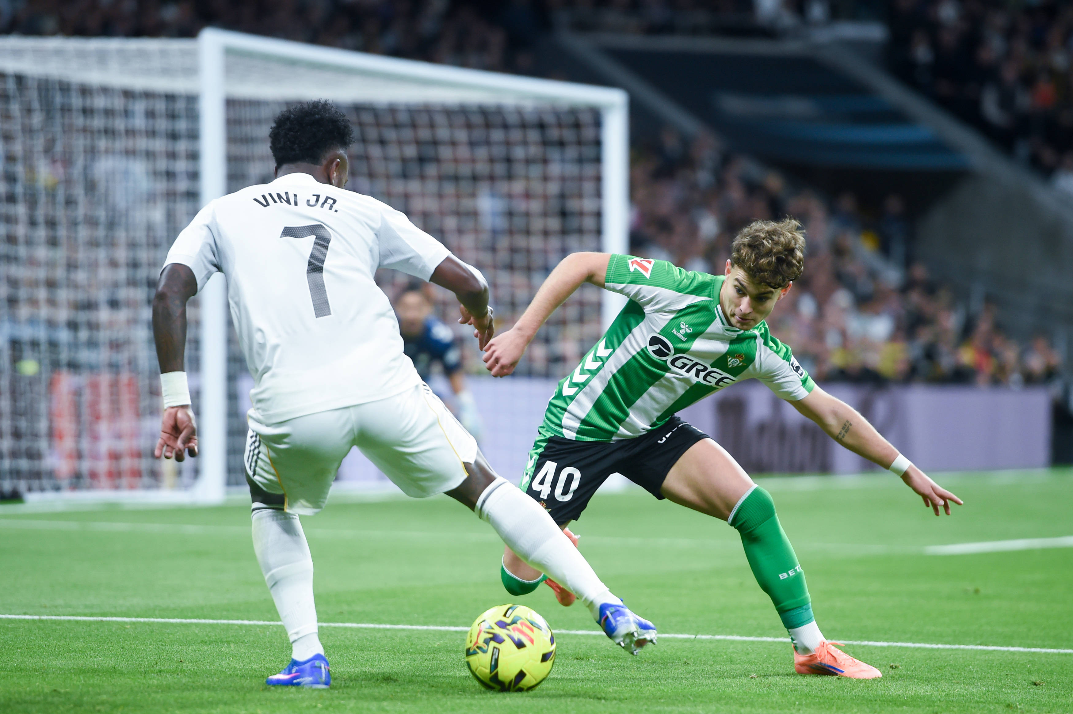 เมื่อวันที่ 4 มกราคม วินิซิอุส (ซ้าย) ของเรอัล มาดริด และออสการ์ ออร์ติซ ของเรอัล เบติส ต่อสู้เพื่อแย่งบอลในระหว่างการแข่งขัน สำนักข่าวซินหัว (ภาพโดย กุสตาโว บาร์เรียโตส)