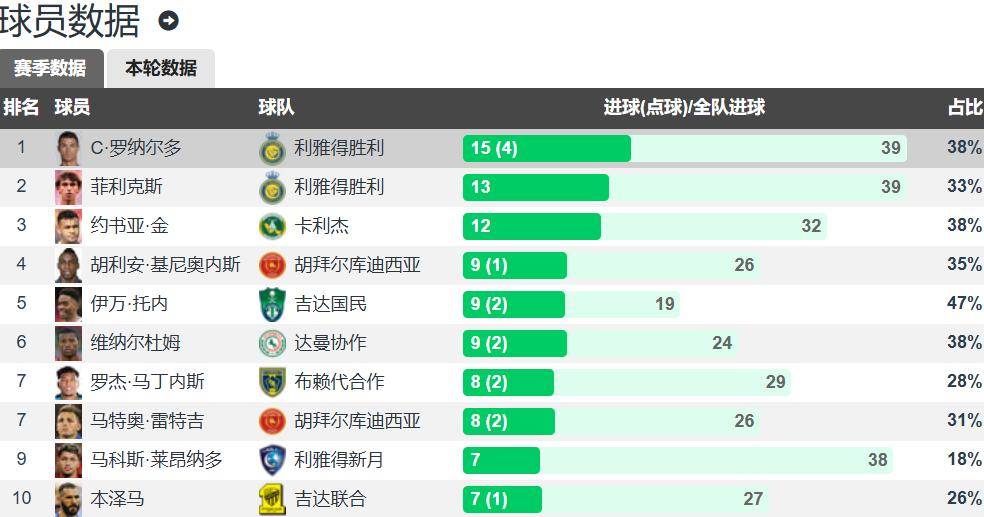 - 第二:强强对话打不了!利雅得胜利现在的情况就是会踢一些虐菜的比赛,对手强一些就踢不了。因为利雅得胜利要带着C罗踢球,强强对话,无法开启正常的进攻套路。近4轮沙特超,利雅得胜利面对的都是前七名的球队,稍微强一点的对手,利雅得胜利就不会踢了,因为利雅得胜利踢得根本不是整体足球,而是续命球星踢法。