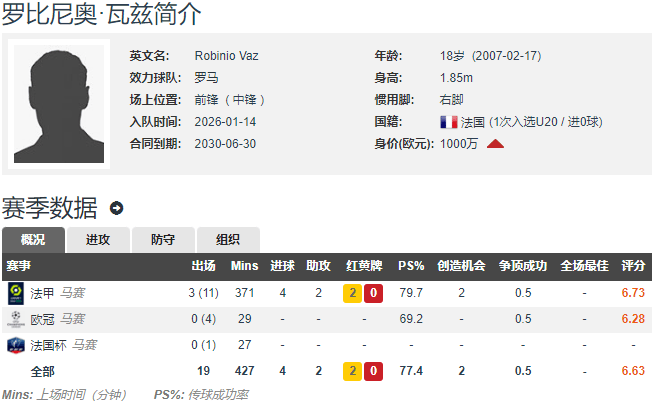 อัจฉริยะวัย 18 ปีของมาร์กเซย: โรบินโญ่ วาซ ย้ายร่วมทีมโรม่า ศึกยูฟ่าแชมเปียนส์ลีก ฤดูกาลหน้า