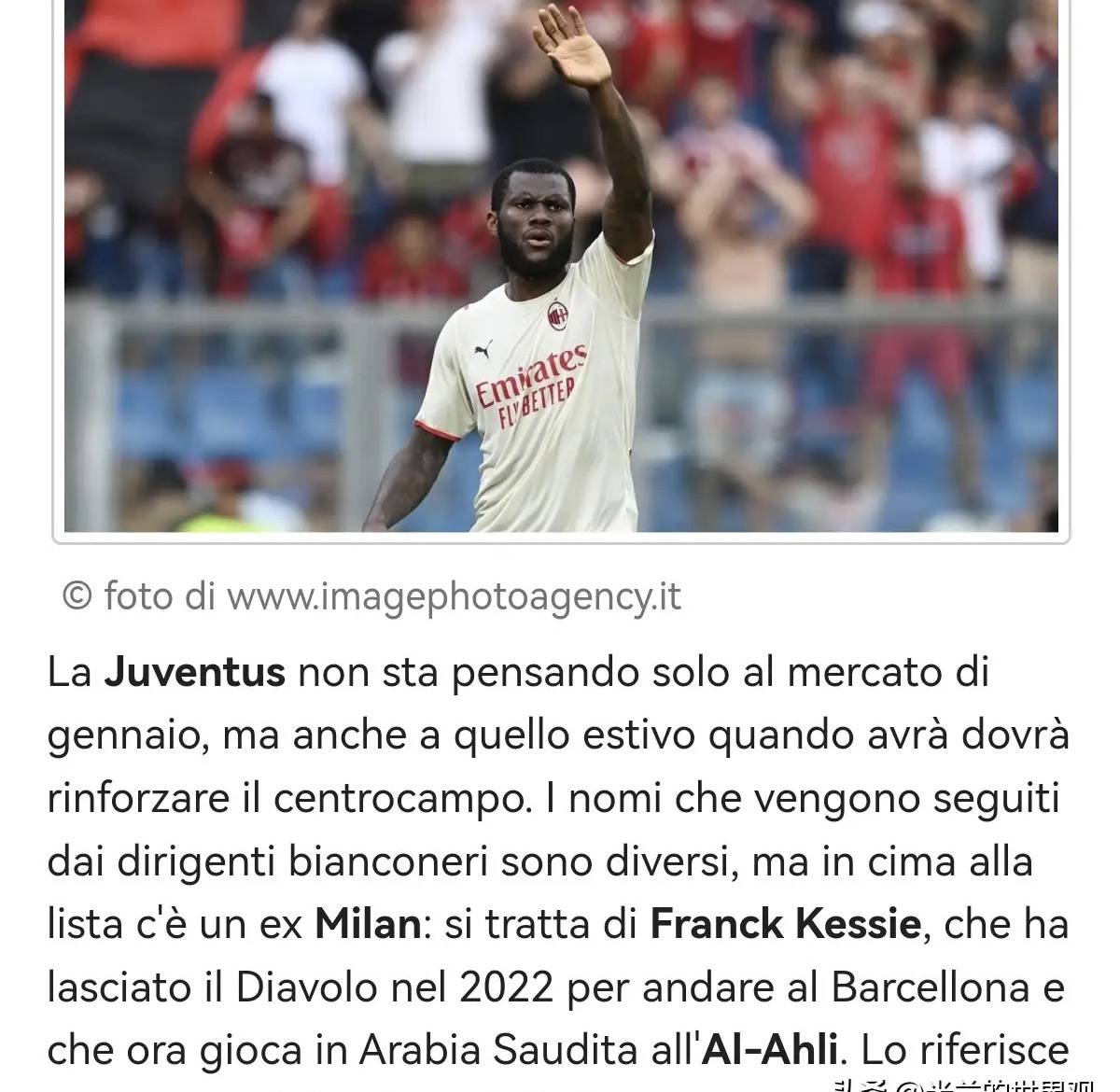 สื่ออิตาลีรายงานว่า: ยูเวนตุสกำลังพิจารณาการเซ็นสัญญาแบบไม่มีค่าตัวกับฟรองค์ เคสซีเย่ อดีตนักเตะของเอซี มิลาน ซึ่งสัญญาของเขาจะหมดลงในช่วงซัมเมอร์นี้