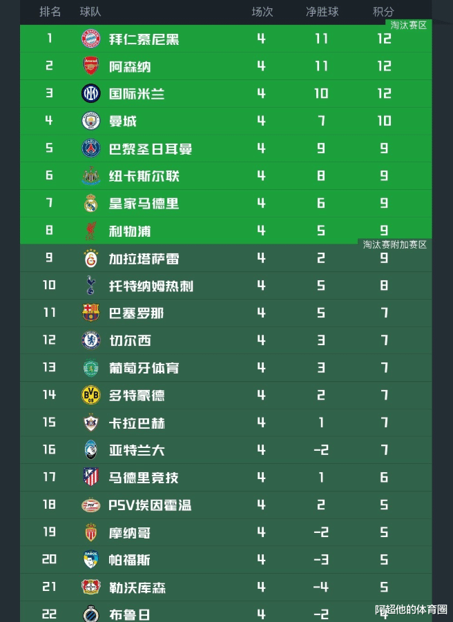 ทีมอันดับแปดทีมแรกจะผ่านเข้าสู่รอบน็อคเอาท์ 16 ทีมสุดท้ายโดยตรง โดยบาเยิร์น มิวนิค และอาร์เซนอล โดดเด่นเป็นสองทีมที่น่าประทับใจที่สุดในฤดูกาลนี้อย่างไม่ต้องสงสัย บาเยิร์นคว้าชัยชนะ 2-1 เหนือแชมป์เก่า ปารีส แซงต์-แชร์กแมง ในรอบนี้ โดยเก็บสามแต้มไปได้อย่างสบายๆอาร์เซนอล แม้จะอยู่ในช่วงชนะติดต่อกันสี่นัดและมีผลต่างประตูเท่ากับบาเยิร์น แต่ปัจจุบันอยู่อันดับสองเนื่องจากยิงประตูได้น้อยกว่าสามประตู อย่างไรก็ตาม ควรสังเกตว่าบาเยิร์นและอาร์เซนอลจะพบกันโดยตรงในนัดถัดไป ซึ่งเป็นการปะทะกันของทีมจ่าฝูงที่สัญญาว่าจะเต็มไปด้วยความตื่นเต้น