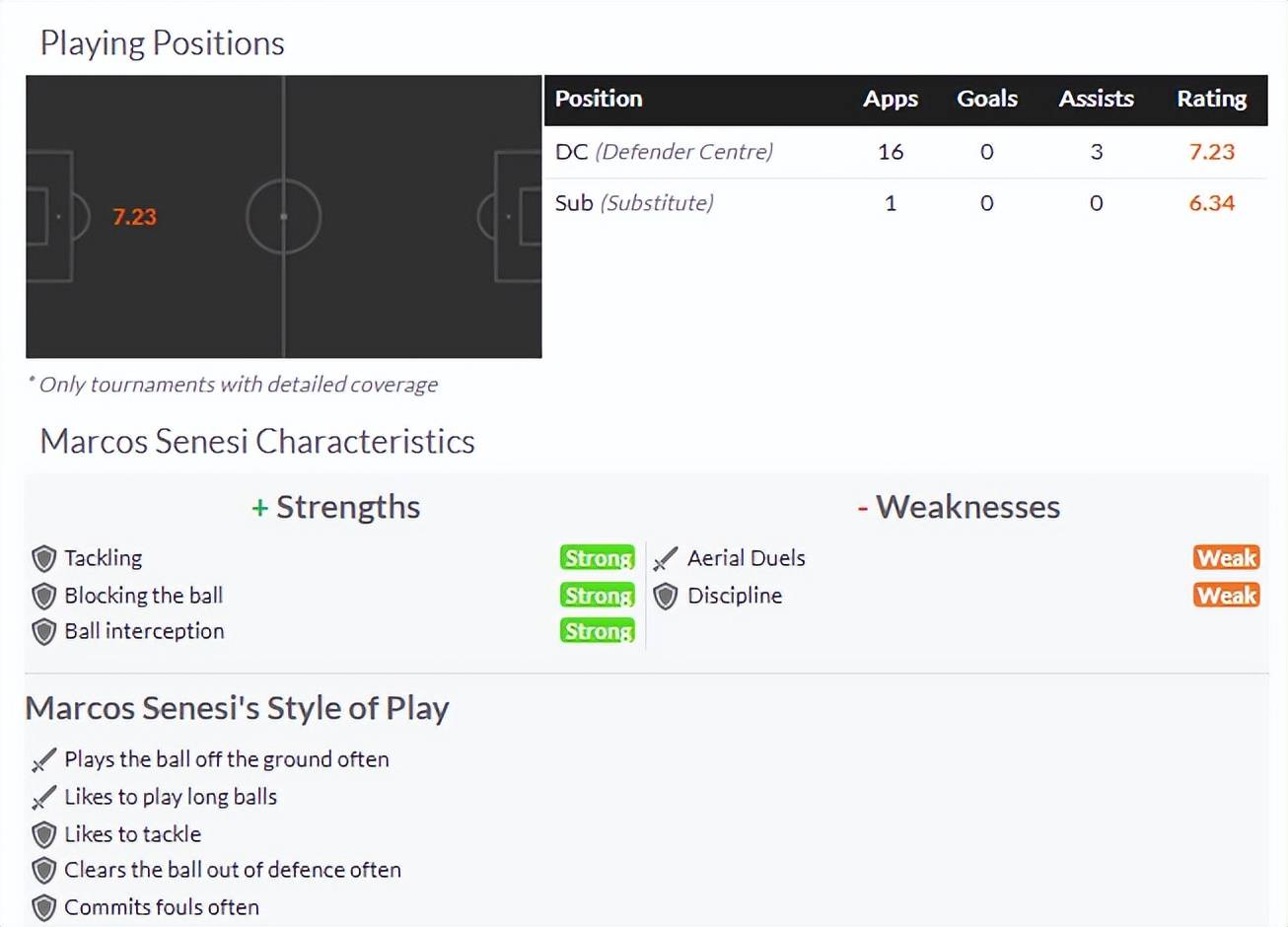 อย่างไรก็ตาม นอกเหนือจากความสามารถในการจ่ายบอลทะลุช่องและเริ่มเกมรุก รวมถึงความสามารถในการพาบอลขึ้นไปข้างหน้าแล้ว การมีส่วนร่วมในการเล่นเกมรับของเซเนซีก็ยังต้องปรับปรุงอีกมาก