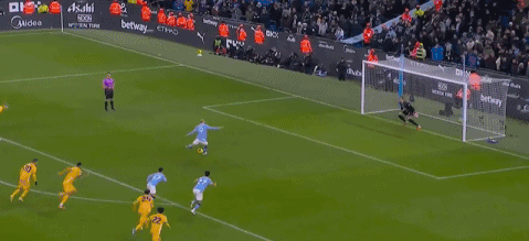 ในนาทีที่ 37 ดูกูบุกทะลุทางฝั่งซ้ายและถูกทำฟาวล์ในเขตโทษหลังจากเปลี่ยนทิศทาง หลังจากปรึกษากับ VAR ผู้ตัดสินตัดสินว่า ดิเอโก้ โกเมซ ได้ทำฟาวล์ มอบจุดโทษให้กับแมนเชสเตอร์ ซิตี้