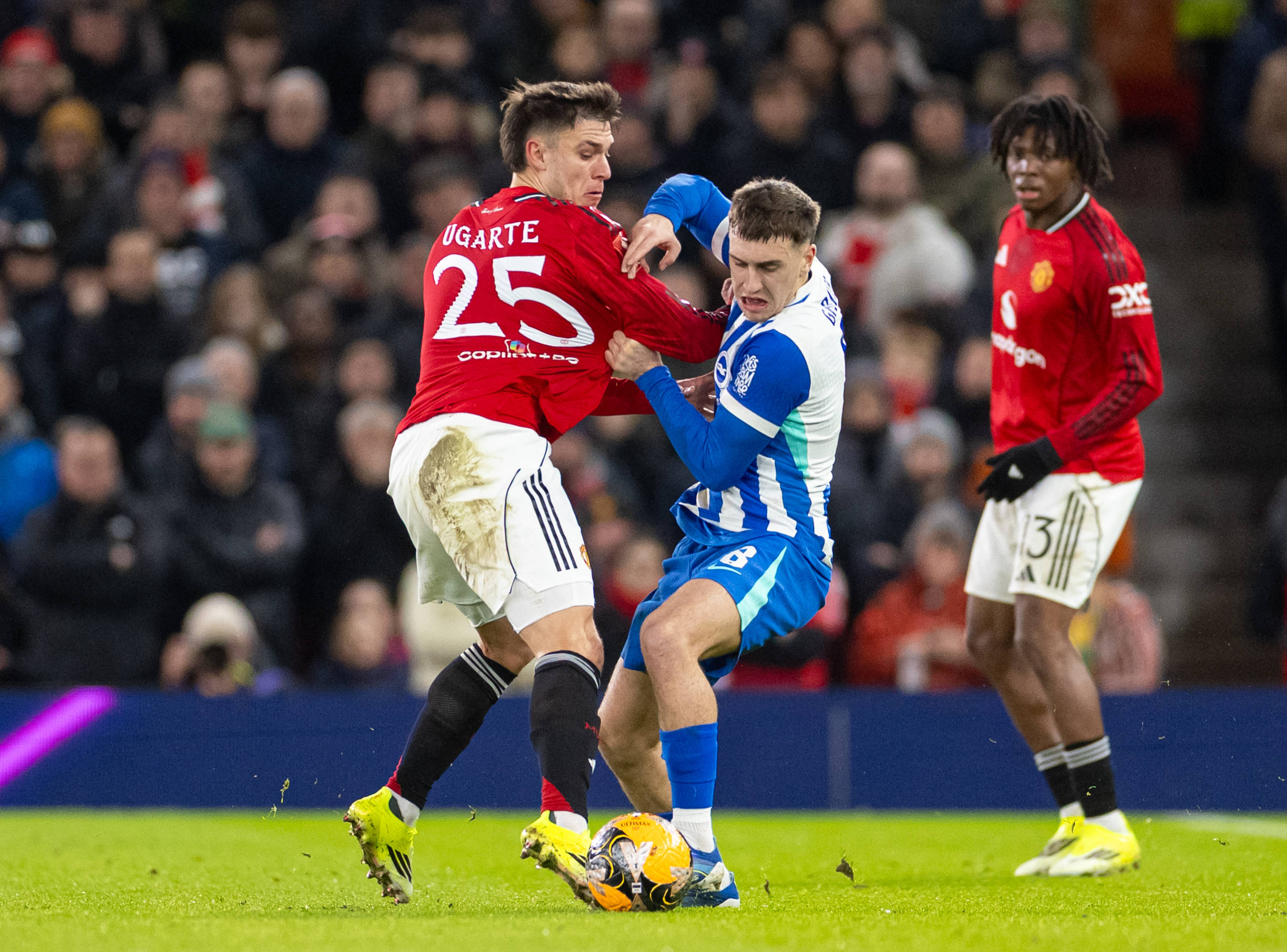 เมื่อวันที่ 11 มกราคม อูการ์เต้ของแมนเชสเตอร์ ยูไนเต็ด (ซ้าย) เข้าปะทะกับกรูธูอิเซนของไบรท์ตันเพื่อแย่งบอล สำนักข่าวซินหัว