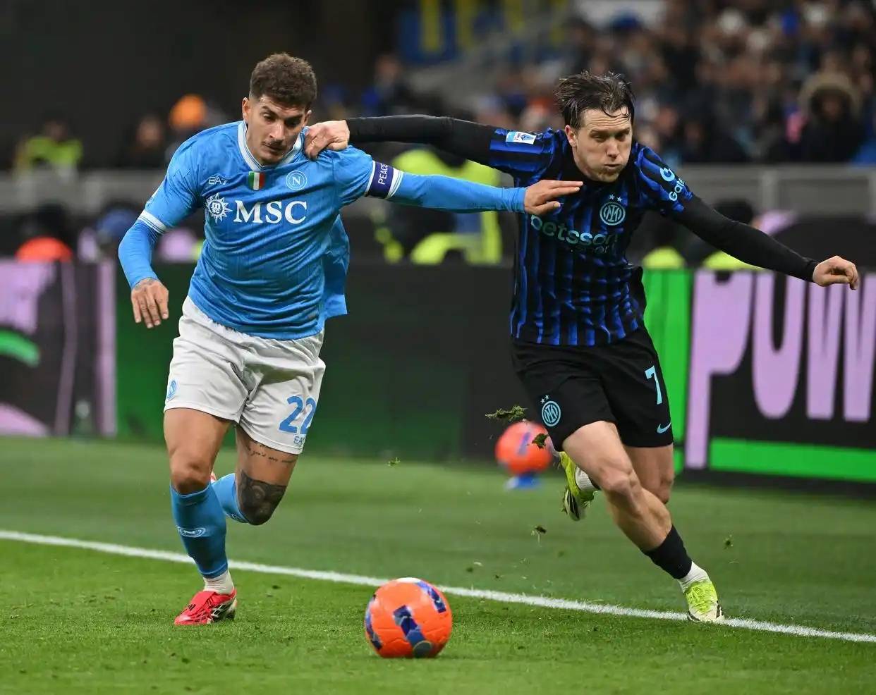 ทั้งสองฝ่ายต่างประสบปัญหาอาการบาดเจ็บก่อนการแข่งขันนัดนี้ แม้ว่าสถานการณ์ของนาโปลีจะรุนแรงกว่าเนื่องจากขาดผู้เล่นตัวหลักหลายคน ผู้จัดการทีมอินเตอร์ ซิฟโควิช เลือกที่จะไม่เปลี่ยนแปลงผู้เล่นตัวหลัก โดยยังคงไว้วางใจในหลุยส์ เอ็นริเก้ และจับคู่กับซีลินสกี้ในแดนกลางอินเตอร์เริ่มต้นการแข่งขันได้อย่างน่าประทับใจ พ่อมดปีกซ้ายฟอร์มร้อนแรงอย่างดิมาร์โก แม้จะต้องยิงในมุมแคบและเผชิญหน้ากับการป้องกันของผู้รักษาประตู แต่เขาก็ยิงเข้าไปอย่างเยือกเย็น พาทีมขึ้นนำ 1-0 อย่างไรก็ตาม ความได้เปรียบนี้อยู่ได้ไม่นาน เมื่อนาโปลีโต้กลับอย่างรวดเร็วและตีเสมอได้สำเร็จ