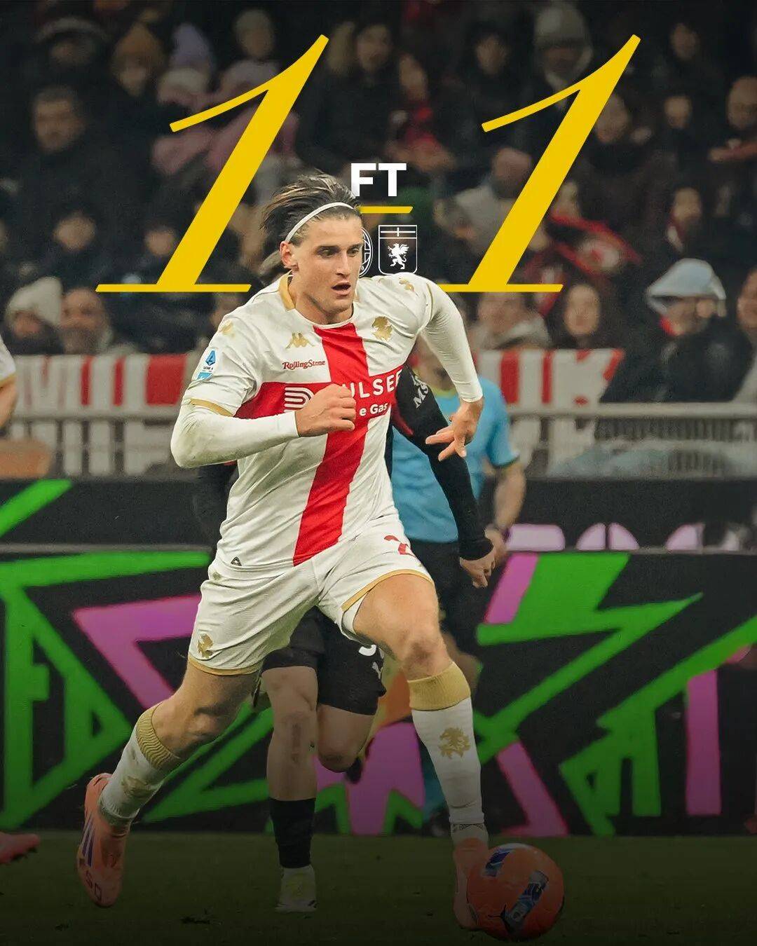 เจนัวเสมอ 1-1 ในเกมเยือนเอซี มิลาน ในการแข่งขันเซเรีย อา นัดล่าสุด ทำให้พวกเขาไม่ชนะใครติดต่อกันเป็นนัดที่ห้า โดยมีอเลสซานโดร มาร์คันดัลลี ออกสตาร์ทเป็นตัวจริงผู้รักษาประตูของเจนัว นิโคลา เลอาลี ปฏิเสธลูกโหม่งของดาวิด แบร์เตซากี ในครึ่งแรก ในนาทีที่ 28 มาร์ลอนเลี้ยงบอลผ่านราบิโอต์เพื่อเปิดโอกาสให้โคลอมโบทำประตูแรก ผู้ทำประตูซึ่งปัจจุบันถูกยืมตัวมาจากเอซี มิลาน งดการเฉลิมฉลองในครึ่งหลัง พูลิซิชทำประตูได้แต่ถูกยกเลิกเนื่องจากแฮนด์บอลจากลูกเตะมุม ในนาทีที่ 92 ราฟาเอล เลเอา โหม่งทำประตูจากลูกเตะมุมอีกครั้งเพื่อตีเสมอ ในช่วงทดเวลาบาดเจ็บลึกเข้าไป ดาวิด แบร์เตซากี ทำฟาวล์ในกรอบเขตโทษจนเสียจุดโทษ จากนั้น พาฟโลวิช ทำลายพื้นหญ้าใกล้จุดโทษก่อนที่ สแตนซิอู จะยิงจุดโทษ ส่งบอลเข้าอัฒจันทร์เจนัวพลาดโอกาสคว้าชัยชนะที่ดูเหมือนจะอยู่ในมือของพวกเขาในที่สุด หลังจบการแข่งขัน ผู้จัดการทีม ดาเนียเล่ เด รอสซี่ ได้รับใบเหลืองจากผู้ตัดสินเนื่องจากการวิจารณ์อย่างรุนแรงต่อปาฟโลวิช ปัจจุบันเจนัวอยู่อันดับที่ 4 จากท้ายตาราง มีคะแนนนำโซนตกชั้นอยู่ 2 คะแนน