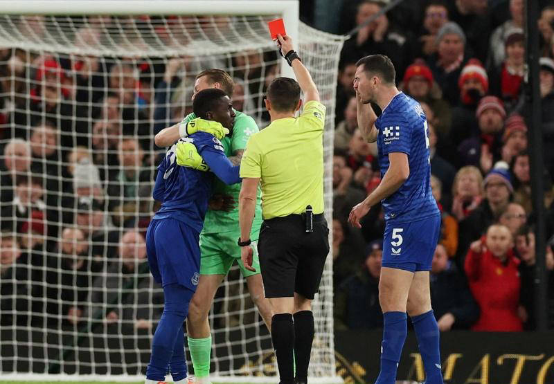 สำหรับแมนเชสเตอร์ ยูไนเต็ด การแข่งขันนี้สะท้อนให้เห็นถึงชุดของความพ่ายแพ้ ตั้งแต่เริ่มเกมเพียงสิบนาที กัปตันทีมเอฟเวอร์ตันวัย 37 ปี เซมัส โคลแมน ต้องออกจากสนามเนื่องจากอาการบาดเจ็บ จากนั้นเพียงสามนาทีต่อมา อิดริสซา เกย์เอ ที่กำลังอารมณ์เสีย ได้ปะทะกับเพื่อนร่วมทีม คอนเนอร์ คีน โดยตีเข้าที่ใบหน้าของเขา ผู้ตัดสินไม่ลังเลที่จะแจกใบแดงให้เขาออกจากสนามทันทีในเหตุการณ์ที่คาดไม่ถึง ทีมเอฟเวอร์ตันที่เหลือผู้เล่นเพียงสิบคนขึ้นนำจากการยิงไกลของฮอลล์นอกกรอบเขตโทษ ซึ่งกลายเป็นประตูเดียวของเกมนี้ แม้ว่าผู้จัดการทีมยูไนเต็ด อโมลิน จะส่งตัวสำรองอย่างเมานต์, เมนา และดาล็อต ลงสนามเพื่อพยายามพลิกสถานการณ์ แต่สุดท้ายพวกเขาก็ไม่สามารถป้องกันความพ่ายแพ้ในบ้านได้นี่นับเป็นความพ่ายแพ้ในบ้านครั้งที่สองของยูไนเต็ดในฤดูกาลนี้ – โดยก่อนหน้านี้พวกเขาแพ้ให้กับอาร์เซนอลในนัดเปิดฤดูกาล นอกจากนี้ยังเป็นการแพ้ครั้งแรกของสโมสรใน 47 นัดที่พบกับทีมที่มีผู้เล่นโดนไล่ออกก่อน ใน 46 นัดก่อนหน้านี้ ยูไนเต็ดชนะ 36 นัดและเสมอ 10 นัด