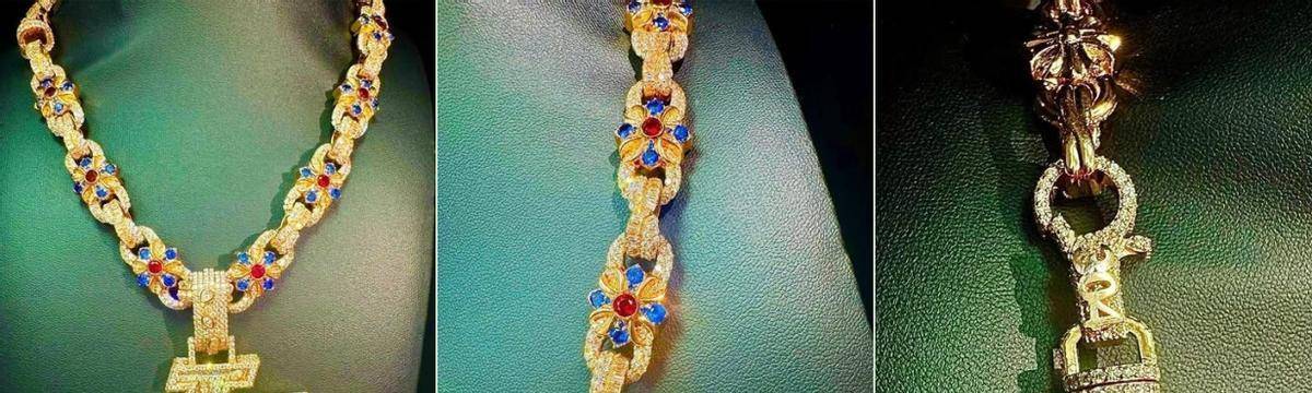 สร้อยคอเส้นนี้มีการออกแบบที่ชาญฉลาด: บนฐานทองคำ มีลวดลายดอกไม้สีแดงและน้ำเงินแสดงความเคารพอย่างยิ่งต่อบาร์เซโลนา พร้อมทั้งมีอักษรย่อ "LY" ของชื่อ Yarmolenko และหมายเลข "304"แฟนๆ ที่คุ้นเคยกับเขาจะจำได้ว่า '304' เป็นท่าทางฉลองที่เป็นเอกลักษณ์ของยาร์มาล ซึ่งเป็นการแสดงความเคารพต่อรหัสไปรษณีย์ 08304 ของย่านที่เขาอาศัยอยู่ โรคาฟอนดา ของขวัญชิ้นนี้สะท้อนให้เห็นถึงความใส่ใจอย่างลึกซึ้งของเอลอัลฟา