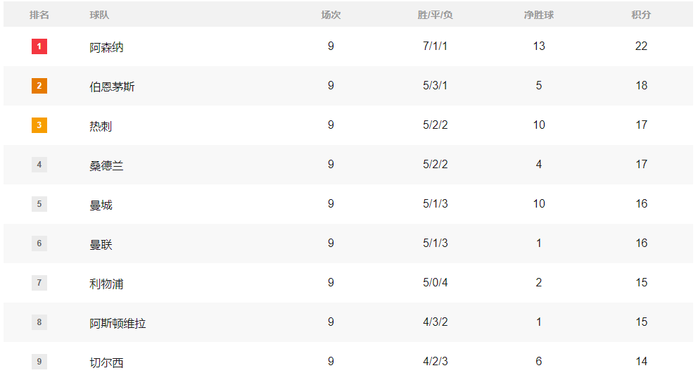 เมื่อวันที่ 27 ตุลาคม เวลาปักกิ่ง การแข่งขันอีกนัดหนึ่งในลีกชั้นนำทั้งห้าของยุโรปได้จัดขึ้น โดยอันดับปัจจุบันเป็นดังนี้: