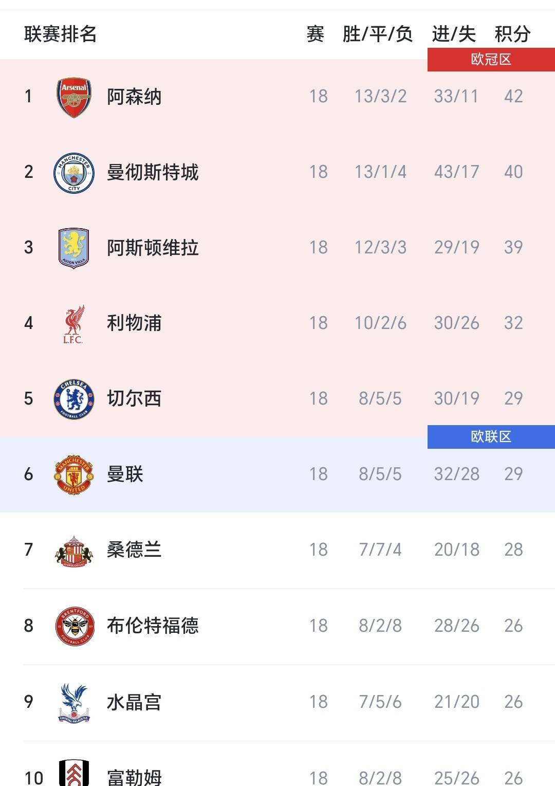 กลุ่มทีมกลางตารางยังคงแข่งขันกันอย่างสูสี เชลซีตกไปอยู่อันดับที่ห้าหลังจากแพ้ให้กับแอสตัน วิลล่า มีคะแนนเท่ากับแมนเชสเตอร์ ยูไนเต็ดที่ 29 คะแนน แต่เสียประตูได้น้อยกว่า ทีมอย่างนิวคาสเซิลและเบรนท์ฟอร์ดตามหลังอยู่เพียงสามหรือสี่คะแนนเท่านั้น ทำให้การแข่งขันเพื่อคว้าตั๋วไปเล่นในยุโรปทวีความดุเดือดยิ่งขึ้น