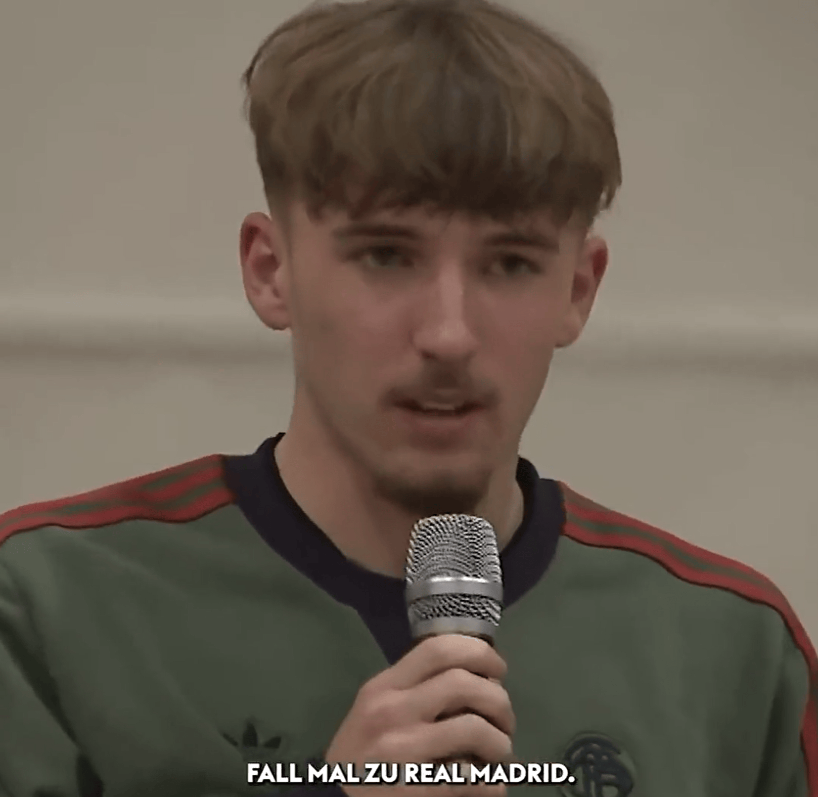 เมื่อวันที่ 5 มกราคม ตามเวลาปักกิ่ง ขณะที่บุนเดสลีกายังอยู่ในช่วงพักฤดูหนาว เลนาร์ต คาร์ล นักเตะของบาเยิร์น มิวนิค ได้กล่าวถ้อยแถลงที่น่าตกใจระหว่างงานเยี่ยมชมแฟนคลับประจำปี ซึ่งสร้างความผิดหวังและความไม่พอใจให้กับแฟนบอลบาเยิร์นเป็นอย่างมาก ฝันอยากย้ายไปร่วมทีมเรอัล มาดริด! ดาวรุ่งมูลค่า 60 ล้านยูโรของบาเยิร์นเปิดใจอย่างตรงไปตรงมา—ในวัยเพียง 17 ปี เขาได้เรียนรู้จากโครสและอาลาบาแล้ว